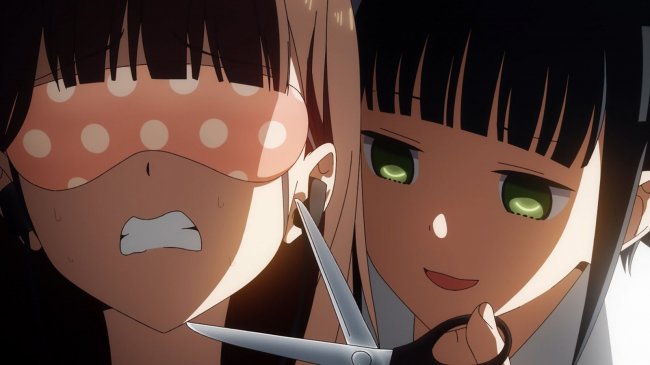 Или вот Ю Исигами уверен, что Кагуя хочет его убить, и та как раз входит в кабинет студсовета с окровавленным ножом под музыку из «Психо» Хичкока