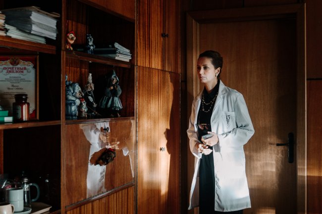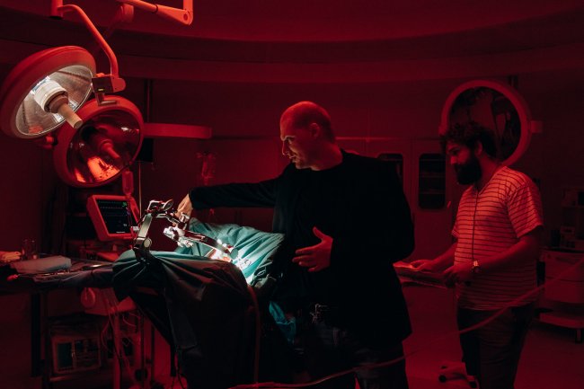 «Когда наш главный герой попадает в клинику, ему остается жить примерно неделю, а главврач говорит: "Ну, вы здесь еще лет 30-40 проживете". Меня зацепила идея, что в этом месте время заморожено, и мне захотелось создать вневременное, но достаточно конкретное пространство со своей историей. Помимо лечения физических увечий, там еще происходит духовная психотерапия – например, МРТ у нас в шутку называется исповедью. Я предложил сделать больницу чем-то вроде храма, поскольку религия, изгнанная с советского пространства, находила воплощение в подобных постройках», – рассказал Козинский.