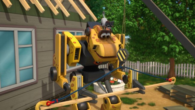 Самый меланхоличный и, что уж тут, ленивый, тираннозавр Трак отличается внушительным размером и одной особенностью – он единственный не обладает колесами или другими средствами передвижения, отчего порой впадает в уныние, будто ослик Иа. Зато у него есть огромные руки-манипуляторы, благодаря которым можно даже построить новую крышу.