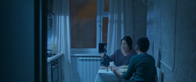 ) тоже так: сумеречные оттенки размазаны по квартире, где все, включая пару, кажется серым, а прозрачная дверь на кухню становится невидимой стеной между супругами.