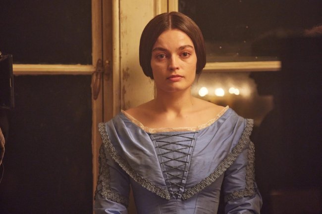 ), обладающей пуританским нравом, более конвенциональной красотой и вечно завитыми кудрями. Шарлотта уезжает из родного дома и становится преподавательницей, считая любовь Эмили к выдумке сюжетов ребячеством (да и сама забрасывает сочинительство). К слову, процесс творчества в фильме показан механически, что, разумеется, к лучшему: иначе рождение великих романов, с учетом общей мелодраматической тональности, рисковало бы превратиться в высокопарную фантазию.
