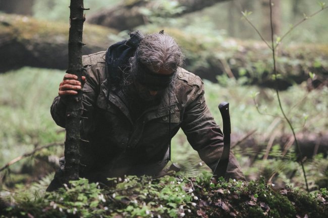 Дмитрий Нагиев, и в «Непрощенном», и в «Чикатило», что уж, частенько отличающийся драматическим переигрыванием, в «На ощупь» неожиданно аккуратно собран. Возможно, этому помогает и тот факт, что треть экранного времени герой Нагиева проводит в темной повязке и чаще не на крупных, а средних планах в кромешном лесу, где сценическими партнерами становятся разве что волк и медведь – настоящий, а не как в «Защитниках» Сарика Андресяна.