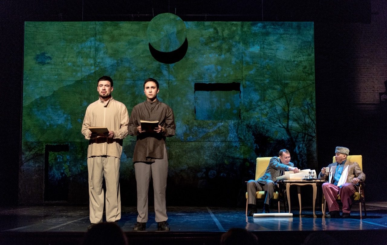 Еще одна важная для зрительского опыта вещь — спектакль играется на татарском языке. Размеренный синхронный перевод на русский в один наушник не мешает слушать естественные интонации исполнителей, и два параллельных канала дают дополнительный звуковой объем, что удивительным образом обогащает восприятие. Остается только поздравить Татарстан и Альметьевск с фактом существования в нем такого замечательного живого театра, с прекрасными репертуаром и труппой, достойными взыскательной публики одного из самых престижных театров Москвы.