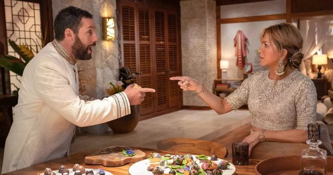 На стриминг-сервисе Netflix вышло продолжение суперуспешной детективной комедии «Убийство на яхте» с Дженнифер Энистон и Адамом Сэндлером , играющими обычную семейную пару из Америки, которая вдруг погружается в расследование загадочной смерти. Первая часть была в каком-то смысле списана с «Убийства в Восточном экспрессе» Агаты Кристи (или даже новейшей экранизации Кеннета Браны ). Фильм с Энистон и Сэндлером – артистами выдающегося комического амплуа – конечно, представлял пародию на детективный сюжет. Причем довольно остроумную и отчасти предвосхитившую другие сатирические прочтения, какими теперь повально увлеклись кинематографисты и онлайн-платформы. «Убийство на яхте» на несколько месяцев опередило релиз первого «Достать ножи», тоже отсылающего к классике Кристи. Однако «Убийство в Париже» сильно задержалось относительно премьеры «Стеклянной луковицы», да и второго сезона «Белого лотоса», спекулирующего на этой же теме и все той же пьесе Кристи «И никого не стало». Бывший полицейский Ник Шитц (Сэндлер) и его жена Одри (Энистон) после раскрытия громкого «Убийства на яхте», естественно, решили переквалифицироваться в частных детективов. Правда, для получения лицензии, которая поможет им вывести хобби на профессиональный уровень, Нику необходимо сдать соответствующий экзамен. Одри уже заучила все нужные ответы, выписанные из книги большого эксперта Коннора Миллера (Марк Стронг ), а вот Ник уверен, что вместо этой никому не нужной теории гораздо важнее его личная – полицейская – практика. Читать «Приворись моей женой» — еще одна комедия с Сэндлером и Энистон На фоне профессионального кризиса Шитцов, которым все то и дело намекают на то, что нельзя связывать работу и личную жизнь, обуревает, естественно, и семейный. Одри недовольна пассивностью мужа, Ника, в свою очередь, раздражают непрошенные советы и чрезмерный контроль со стороны жены. И вот случайный звонок от их теперь уже друга махараджи Викрама (Адил Ахтар ), знакомого как раз по предыдущему делу, меняет их погрязший в быту брак. Викрам приглашает Шитцов на свадьбу с французской невестой (Мелани Лоран ). Торжество, впрочем, начнется вовсе не Париже, а в индийский традициях и на частном острове, где паре Нику и Одри придется снова встретиться с теперь уже одноруким полковником (Джон Кани ), опять же известным по «Убийству на яхте», а также с сестрой махараджи Сайрой (Куху Верма), его бывшей Графиней (Джоди Тернер-Смит ) и партнером по бизнесу, футболистом-ловеласом Франциско (Энрике Арсе ). Неожиданно в разгар празднества Викрама похищают — и тут же начинают требовать огромный выкуп. Очевидно, в деле замешан кто-то из ближнего круга махараджи. На расследование, по настоянию родственников и генерала, прилетает тот самый Коннор Миллер, но похитители готовы разговаривать только с четой Шитцов, которым и предстоит распутать загадочное похищение. Читать 5 отличных комедийных детективов последних лет «Убийство в Париже», казалось бы, повторяет вводные первой части. Тут и не самый счастливый брак героев Сэндлера и Энистон, и штампы про обычных американцев, чьи манеры и акцент удивляют не только благостных европейцев, но и представителей всех других стран, и даже убийство как стимул для запуска детективного сюжета (перед похищением Викрама смертью храбрых падет его по-аз