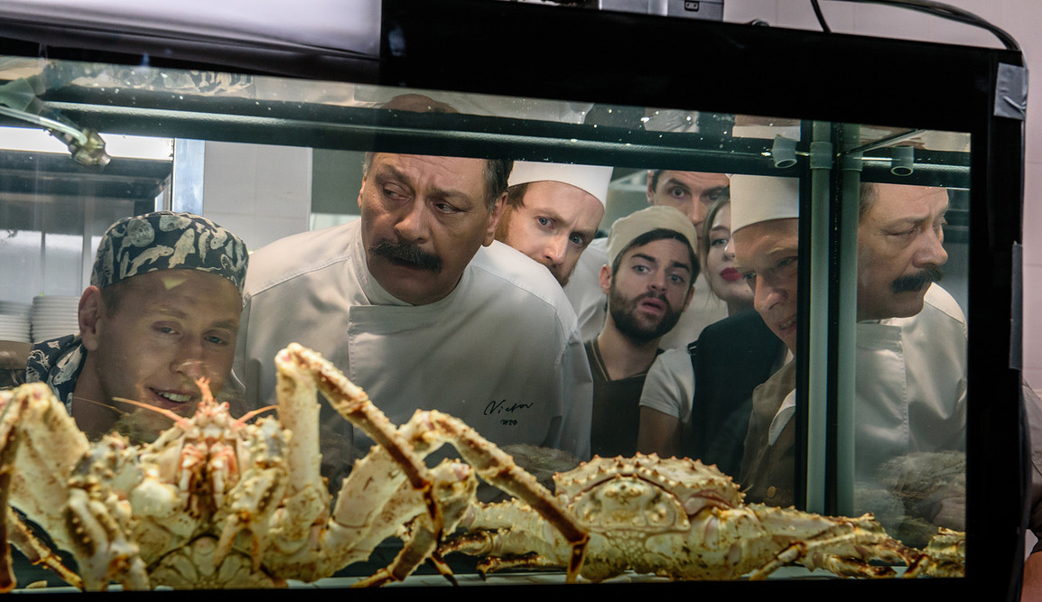 Можно проявить добросердечность и сказать, что главная проблема новой «Кухни» — феерический пролог, с которым само повествование сравниться не может. Судите сами: картина начинается с официального приема, на котором Виктор Баринов подает президенту и китайской делегации камчатского краба. Однако членистоногое вдруг оживает и, угрожающе шевеля клешнями, ползет к главе государства (авторы таким образом ловко обыгрывают мем «Путин — краб», всего-то добавив в него союз «и»). Баринову ничего не остается, кроме как запрыгнуть на стол и вонзить в животное нож с той же яростью, с какой герои эпических саг вонзают мечи в драконов.