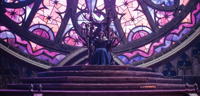 , даже глаз один, второй – искусственный. Для того, чтобы сделать такой биомеханический глаз, гримеры заказали специальную склеральную линзу, за создание которой взялись только в одном-единственном месте в стране. Рост ведьм по сюжету почти 3 метра, поэтому и декорации в павильоне созданы разных масштабов, а часть костюмов еще и сделана в разных размерах.