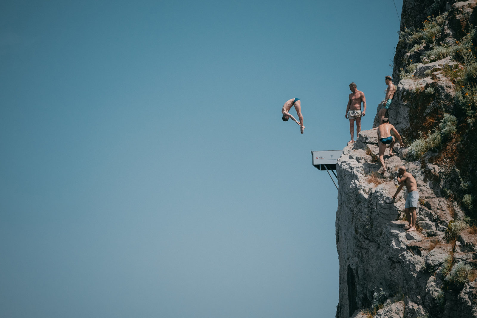 По сюжету профессиональный спортсмен и участник олимпийских игр Влад Фокин (Александр Головин) переживает кризис карьеры. Его отец и по совместительству тренер (Алексей Шевченков) никак не может повлиять на эмоциональное состояние сына. Апатия длится до того момента, пока в один из дней к Владу не приходят следователи с очень странной просьбой: предлагают поучаствовать в соревнованиях по клифф-дайвингу, организатором которых выступает его бывший партнер по прыжкам в воду — Семен Царев (призер чемпионатов России и Мира Роман Измайлов). Среди участников соревнований будут не только известные спортсмены из мира клифф-дайвинга, но и экстремалы-любители, среди которых следователи надеются вычислить давно разыскиваемых грабителей. Влад соглашается на участие в соревнованиях и приезжает в Крым. Новые знакомства, постоянный риск и экстремальные высоты помогут вернуть герою жажду к жизни и состязаниям. Также в касте актер Владимир Сычев и чемпион мира по клифф-дайвингу Артем Сильченко. Съемки уже завершены, они проходили в Крыму, Москве, Рузе, а также в Екатеринбурге в рамках Чемпионата России про прыжкам в воду. Кинотеатральная премьера намечена на февраль 2024 года.