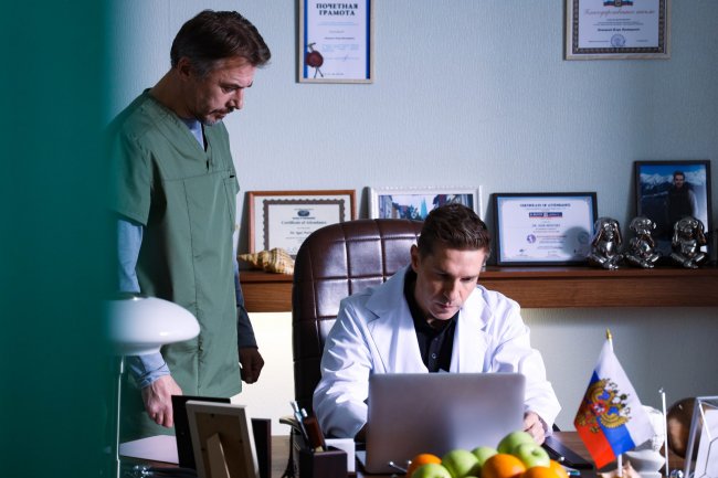 Есть, правда, врачи и с корыстными целями. Один из пациентов по фамилии Семенов неожиданно умирает: он по ошибке оказался в списке испытуемых нового препарата, который в клинику продвигает однокурсник Краснова – Новицкий (Александр Ратников
