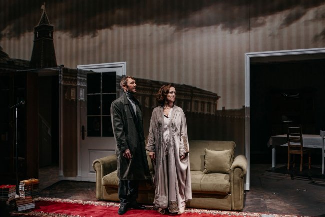 Весь спектакль в целом оказывается историей о том, как люди взяли и поменялись ролями: Наташа в итоге стала хозяйкой квартиры и главой семейства, а Кирилловы потерялись во времени и упустили счастье, которое мелькало где-то на горизонте. При этом виноватых нет и быть не может: у каждого – своё горе, своя судьба и своё разбитое корыто. А ещё прошлое, которое решительно влияет и на жизнь человека, и на окружающий их мир. Прошлое страны в пьесе Марины Крапивиной – это одновременно советская эпоха и русская классическая литература. Герои проживают как будто уже известные судьбы: на сцене будет мерещиться то «Война и мир», то «Вишнёвый сад», то «Три сестры». Последние – больше всего: Маша, Андрей и Марк, прямо как сёстры Прозоровы (но которые добрались-таки до Москвы), мечтают о семейном счастье, а вместо него появляется суетящаяся и безвкусно одевающаяся Наташа. В чеховском тексте на ней было розовое платье и зелёный пояс, а здесь вместо пояса – ярко-зелёные носки. Постановщица Светлана Землякова литературный контекст пьесы специально подчёркивает: на краю сцены на протяжении всего спектакля пылятся стопки старых книг, которые Маша называет хламом и которые никто не читает. Лишь изредка Наташа откроет Толстого или Андерсена, озвучит первую попавшуюся на глаза строчку – и вмиг окажется, что в этих никому не нужных фолиантах уже написано про её судьбу и про судьбу всех остальных в этой квартире. Даже «раб», которого «всю жизнь выдавливал из себя» Чехов, здесь есть. Уже нет крепостного крестьянства, но маячит за спиной призрак советской империи, порождающий страхи и недоверие; поэтому и красный цвет здесь болезненно-яркий и бросается в глаза – в одежде, на губах или женских туфлях.