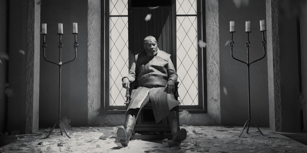 . Текст Шекспира, разумеется, никто тронуть не посмел, ограничившись масштабированием декораций, — получился эталонный с продюсерской точки зрения продукт, старомодный, но новаторский технически. На его фоне адаптация для Apple TV+ за авторством Джоэла Коэна (в первый раз занявшегося режиссурой без брата