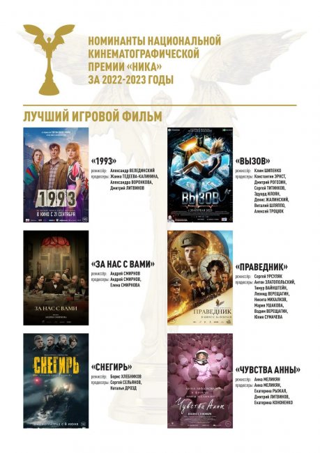 Российская академия кинематографических искусств объявила номинантов премии «Ника» за 2022 и 2023 годы. На главную награду в категории «Лучший игровой фильм» претендуют «1993