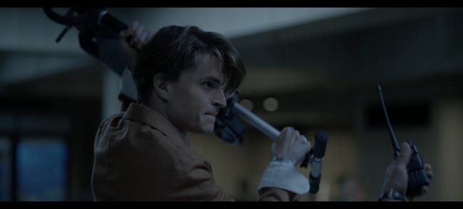 Интересная «Калимба» и с визуальной точки зрения. Вроде бы простая, но при этом зловещая локация, осматривать которую зрителю предлагают еще и через камеры слежения, причудливо искажающие картинку, как кривые зеркала в комнате смеха из парка аттракционов. Впрочем, не до смеха: чем дальше, тем изображение все больше погружается в подвальный мрак, в затхлую атмосферу тоннелей, ведущих из бункера на волю — но света в конце пока не видно. Герои копошатся в темноте, вслепую пытаются разгадать ребус, не зная, что за закрытыми дверями их уже давно никто не слышит и не видит. Мещерскому, поначалу предстающему этакими всесильным кукловодом, наблюдающим за событиями из «режима бога», приходится не сладко — на Федора Бондарчука находит управу Сергей Гармаш