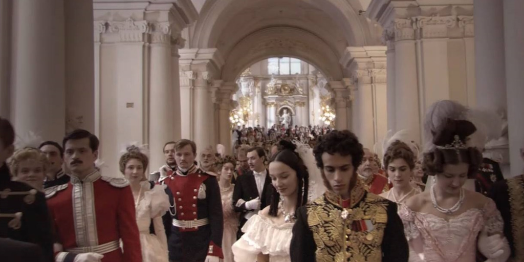 ) то и дело проваливаются во временные дыры, видя одно место в разных точках истории. Когда очередная временная аномалия заносит их на бал эпохи Николая I, камера Тильмана Бюттнера фиксирует супружескую ссору: Пушкин в мундире камер-юнкера (звание не по возрасту, да и не по статусу) быстрым шагом уходит от супруги Натали. Весь бал они проведут не вместе — и вновь найдутся уже на выходе из зала.