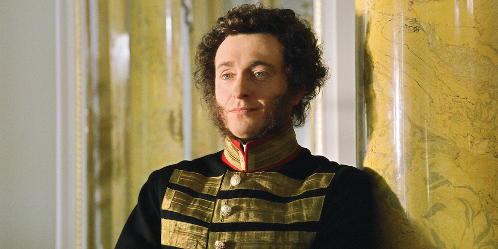 — и это самое реалистичное изображение поэта в кино. Как и на картине Николая Ульянова «Пушкин с женой на балу», поэт на лицо очень своеобразен, а форма придворного явно ему неудобна и даже противна. Что вполне логично: звание и эполеты Пушкину жаловали лишь для того, чтобы он мог приходить на балы, беря «плюс один» — красавицу-жену, от которой была в восторге столичная публика. Сам Пушкин на светских раутах мало кому был интересен. Единственное лукавство, которое Сокуров все же допустил, — не показал разницу в росте Пушкина и супруги. Поэт был невысок, что делало сопровождение Натали на балы еще более унизительным. Романтик-патриот: «Пушкин: последняя дуэль