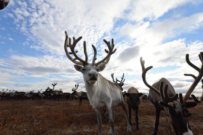 Оленей журналисты уже не застали. Стадо в три тысячи голов пригнали с пастбища и держали на площадке восемь дней. «Мы думали, пригонят много — аж двести оленей, но когда увидели три тысячи, поняли, что двести — практически ничего», — говорят кинематографисты. Группа признается, олени со своим «хорканьем», волосатыми носами произвели фурор, но они совершенно не киношные животные, сложно с ними работать. «Каждый день олени уходят в поисках пищи, а для кадра они нужны в группе. Однажды, оленеводы сделали для этого крюк в сто километров. Когда почти отчаялись снять нужный кадр, предприняли еще одну попытку согнать оленей с разных сторон — а они вдруг побежали по кругу в гигантском хороводе — успели снять, энергетика мощнейшая — и жутко, и радостно», — вспоминает замдиректора по объектам Евгений Пугин. В съемочной группе около 60 человек. Художники по реквизиту проверяют, все ли правильно размещено, осветители устанавливают приборы, ассистент по актерам приводит на площадку Никиту Ефремова (послушник Федор) и Дмитрия Поднозова (отец Петр). Актеры снимают пуховики, шапки и входят в кадр. Глядя, как они без ветрозащиты, в расстегнутой куртке стоят на пронизывающем ветру, становится не по себе. «Для меня эта история – про инициацию из подростка в мужчину. Я смотрю на ненцев, у них есть четкое разделение на мужское и женское, мальчики с ранних лет арканят оленей. Кстати, мой герой, как и я, впервые остается жить на стойбище, ему все в новинку, так что я тоже специально не тренировался арканить», — рассказывает Никита Ефремов.