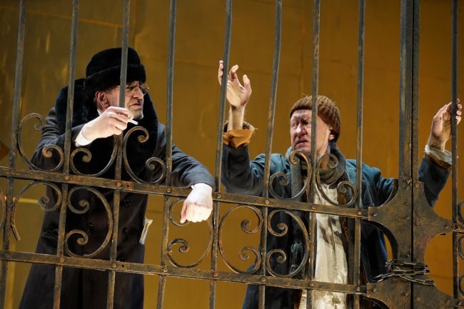 Дело не только в бессмертной прозе Чехова, но и в правильно расставленных акцентах: сводящим с ума желтом цвете, добротно выкованной давлеющей решетке, точной актерской работе. Сергей Курышев произносит фразы смеющимся тенорком и интонацией современного чиновника. Малоузнаваемый Игорь Черневич, переигравший в кино кучу самоуверенных ГБ-шников, тут потрясающе преображается в жертву, раздавленного человека, терзаемого приступами страха, но остающегося верным гуманистическим идеалам. Эти двое, да еще безучастный дворник с полномочиями охранника концлагеря, четверо разноперых больных-заключенных, несколько безмолвных санитаров — скудный, казалось бы, набор образов, но маленький мир лечебницы оказывается слепком большого, нашего. Люди не спешат покинуть больницу, даже если дворник открывает калитку. Все равно поймает и сдаст первый встречный за взгляды твои и крамольные речи, приведут обратно. Повторяя эту мысль, режиссер позволяет дворнику открыть калитку перед актерами уже после того, как спектакль кончился, на поклонах. Они подходят к открытой двери по очереди, кланяются публике, но остаются по ту сторону решетки. Никто из них шага на волю не делает.