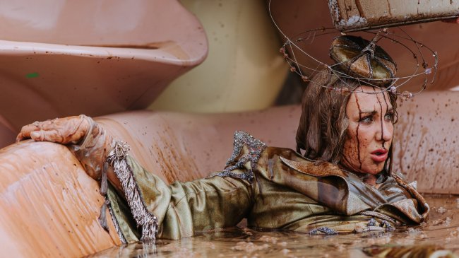 О содержимом бассейна, в котором находится актриса, нам рассказывает постановщик спецэффектов Максим Сорокин: «Шоколад в бассейне разбавлен глицерином. Когда это вещество присутствует в составе, то одежда не так сильно пачкается». Поскольку вся сцена — большой эксперимент, одинаковая одежда шьется заранее. «Для этого эпизода у нас есть четыре костюма Елены Яковлевой: два с ручной вышивкой и дорогими материалами и два чуть-чуть попроще для съемок падения в бассейн. Также нам пришлось сделать похожие украшения, ведь обычно героиня Елены Яковлевой носит настоящие бриллианты: иногда по пять карат на каждую сережку», — говорит Наталья Каневская.