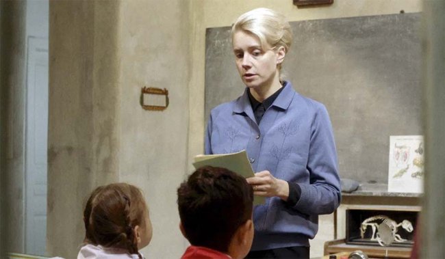 Арабов в титрах намеренно уходит от обозначения конкретного временного периода, оставляя проговаривание эпохи своим героям. В первую очередь Кате, которая приезжает в Албанию, когда та еще дружит с Советским Союзом, и с легкостью устраивается в школу, где преподает русский язык. Пишет на доске «Пушкин – наше всё», но стирает дописанную школьными хулиганами фразу «И Сталин – наше всё». А затем, когда к власти приходит будущий диктатор Энвер Ходжа, кстати, уроженец Гирокастры, города-музея, уже в 2000-е внесенного в список объектов Всемирного наследия ЮНЕСКО, при первой и единственной встрече с ним на выставке, посвященной самому Ходже, рапортует о любви к вождю народа. И речь эта оказывается судьбоносной.
