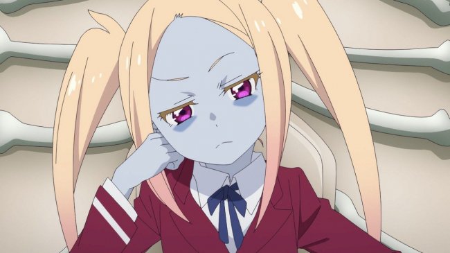 Героини задают маршрут и цели следования, но также выполняют роли «удобных кресел»: без сильной эмпатической привязки едва ли кто-то захочет созерцать мелькающие за окном виды. Фактически «…поезд судного дня» обыгрывает железнодорожную одиссею. Что больше всего запоминается в подобных странствиях? Увиденные пейзажи, небольшие происшествия, случайные незнакомцы, доверительные беседы и бесконечное додескаден (японская ономатопея, имитирующая стук колес). Драматический накал и его консистентность обеспечивает комбо из нетривиального сеттинга, второстепенных персонажей и путевых взаимодействий. Поселение суицидальных людей-грибов, город крошечных человечков во главе с диктатором-гигантом, отшельник-картограф, повелительница зомби — встреченные персонажи дарят героиням свободное пространство, на котором можно проявить себя. Они же заполняют шкалу впечатлений: скажем, упомянутая королева нежити Мито Куроки воплощает наиболее оригинальную адаптацию постулатов Джорджа Ромеро