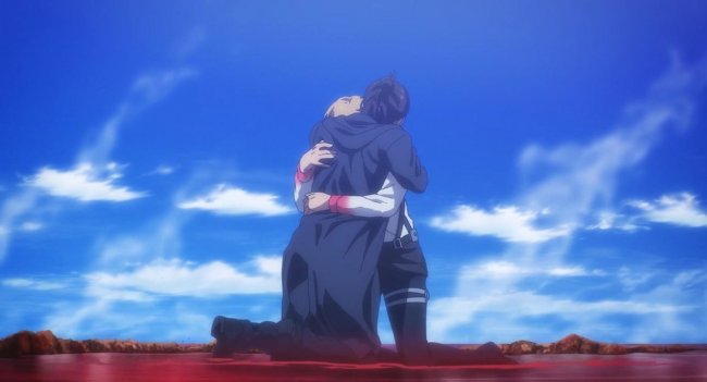 «Многоходовочка» Эрена провалилась: обезопасить Парадиз и предостеречь человечество от самоистребления при помощи геноцида 80% населения планеты — плохая идея. Откровенно тупая, если не подбирать выражений: сам Йегер в прощальном диалоге с Армином признает, что, видимо, не слишком умный, чтобы придумать что-то получше. И вот 19-летний вершитель судеб, видящий прошлое и будущее, способный подчинять своей воле каждого титана и устраивать конференц-коллы со всеми эльдийцами планеты, плачет на кровавой отмели своего грандиозного замысла. Плачет, потому что не хочет умирать — и чтобы Микаса, верная подруга детства, радовалась жизни в объятиях кого-то другого.