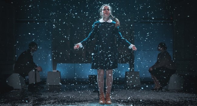 Музыка – один из краеугольных камней постановок Сойжин Жамбаловой: как и в «Лавине», за нее отвечал брат-композитор Дахалэ Жамбалов. Здесь рэп (на стихи постановщицы) оборачивается инструментальным рефреном «Трудно быть невыросшим, бестолковым нытиком», а тот, в свою очередь, переходит в древнерусское пение, звенящее, ясноголосое. Будто заговор Кикиморы вызывает на подмогу Кате другие фольклорные образы: сцену наполняют фигуры в фантастических кокошниках-масках, совершающие некий танец, обряд — быть может, похороны детства. Или самой Кати — как посмотреть. У Некрасовой девочка (временно) превращается в Кикимору и начинает говорить нечленораздельно. В спектакле Нянганского ТЮЗа все немного иначе, он более гуманен и спешит одарить надеждой на счастливый финал.