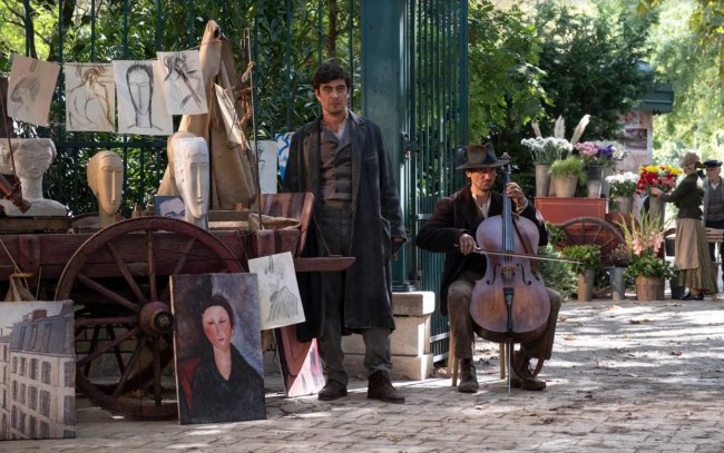 » нельзя назвать классической биографической лентой, ведь даже из названия понятно — на экране лишь отрывок короткой, но насыщенной жизни Модильяни. Он живет в Париже, широко известен в богемных кругах, среди близких друзей — художники Хаим Сутин (Райан Макпарланд) и Морис Утрилло (Брюно Гуэри), на дворе – Первая мировая, в кармане – ни гроша. Шатаясь по закоулкам Монмартра, вечно пьяные приятели-живописцы тщетно пытаются заработать искусством, потихоньку и каждый по-своему сходя с ума: от нищеты, разрухи, висящей в воздухе тревоги, которой пропитаны вдохновлявшие парижские улочки. Не стерпев надменности и пренебрежительного, приправленного антисемитизмом отношения к себе зажравшихся буржуа, Модильяни устраивает акробатический дебош с битьем витражного окна в шикарном ресторане, после чего вынужден скрываться от жандармов. То в кафе «Ротонда» на Монпарнасе, где уже не наливают в долг, то в гостях у торговца картинами Леопольда Зборовского (Стивен Грэм