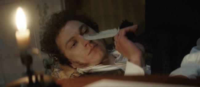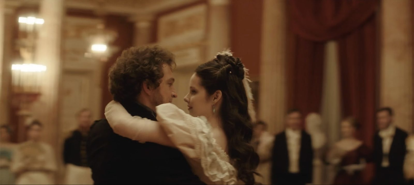 , который и без пластического грима будто сошел со знаменитого портрета кисти Кипренского, появляется перед зрителем уже в статусе и гения, чьими стихами зачитывается вся страна, и не менее известного повесы, о чьих похождения, романах, дерзких выходках и в целом непокорном характере слагают легенды. На одном из светских раутов он замечает впервые вышедшую в свет Наталью Гончарову (Ксения Трейстер