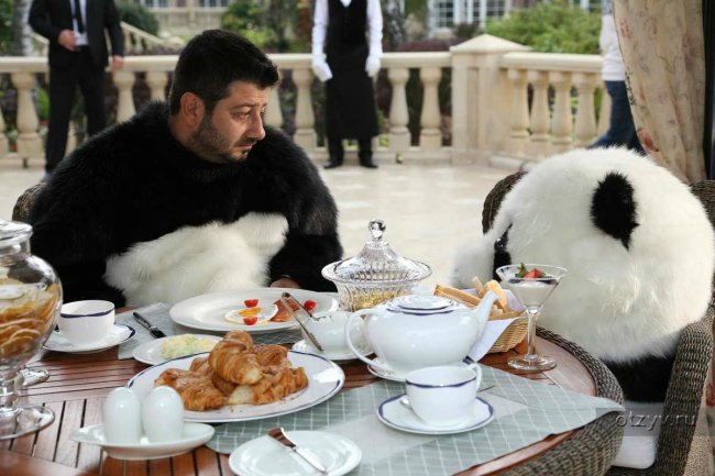 ) работает на детских праздниках в костюме панды. Работа с детьми, может, и увлекательная, но явно не прибыльная, так что герой влезает в долги, и его скромное жилище штурмуют коллекторы с требованиями вернуть 300 тысяч. Мише ничего не остается, как в суматохе принять предложение работодателя заменить коллегу-медведя на очередном детском утреннике. Впрочем, горе-панду не предупредили, что мероприятие – это день рождения девятилетнего сына олигарха, который представляется не иначе, как Артем Николаевич (Артем Фадеев