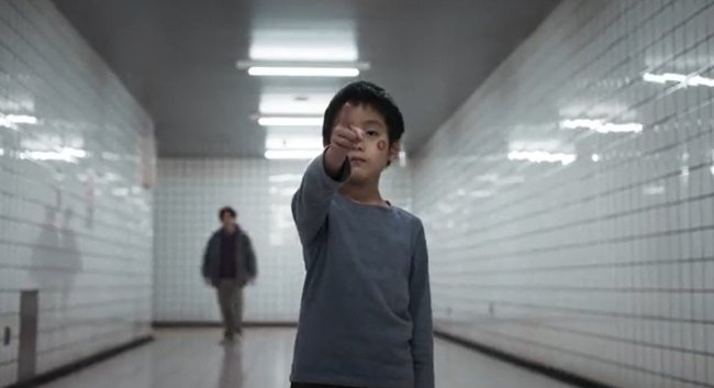Если формальная интрига — что же там за поворотом — в фильме работает почти так же четко, как в игре, то с глобальной, придуманной непосредственно Кавамурой, всё значительно хуже. The Exit 8 начинался сразу в тоннеле и заканчивался небесным светом под звук, предположительно, дверей вагона (или райских врат?). В «Выходе 8» есть нарочитое вступление со звонком беременной экс-подруги и чтением страшных новостей (рост числа бездомных! наводнение! крыса с человеческим ухом на боку!), которые довольно быстро начнут оживать в белоснежном лимбе метро. Для тех, кто опоздал или отвлекся, вскоре прозвучит намек в виде детского плача из коридорного шкафчика, а в финальной трети вообще появится безымянный мальчик (Нару Асанума), чтобы герой-безотцовщина мог хоть кому-то излить душу.