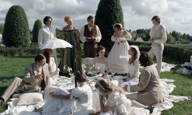 Последний эпизод, когда мы видим белый цвет, – день рождения главной героини. На пикнике почти все собравшиеся снова в белом – под маской притворства и лжи. Сергей Михайлович уверен: Маркиз играет с Машей, с её чувствами… Когда она остаётся с ним наедине, кажется, что должна последовать измена, но Маша сохранят верность мужу. Правда возвращается к нему не в белом, а в чёрном платье: пусть она непорочна в поступках, греховные помыслы всё равно коснулись души. Кажется, что именно в этот момент семейные узы и чувственная связь героев окончательно рвётся. Испаряется образ милой звонкой девушки, нет благородного сдержанного мужчины. Есть люди, которые увидели друг друга без налёта очарования.