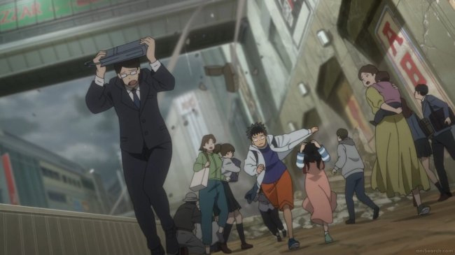 »!), отдельные события образуют повторяющиеся меланхоличные арки или, наоборот, уравновешиваются противопоставлениями. Мелкие детали вместе с разрозненностью персонажей формируют не только местный лор (если верить сериалу, японцы воевали с разрушительными колоссами с эпохи Эдо), но и облик альтернативной Японии. Немного экзотичной с этими светофорами, гигантскими пушками в каждом районе и коллекционными карточками лучших истребителей монстров. И в то же время такой знакомой: стихийные бедствия давно стали привычной частью жизни, как и интегрированные во все смартфоны приложения, сигнализирующие о цунами, землетрясениях и извержениях вулканов. Роль катаклизмов в аниме исполняют кайдзю, которых, в отличие от стихии, можно победить.