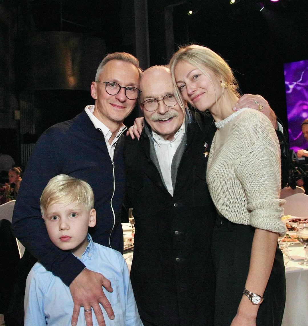с супругой Елизаветой и их сыном. Поздравить брата пришел и Андрей Кончаловский