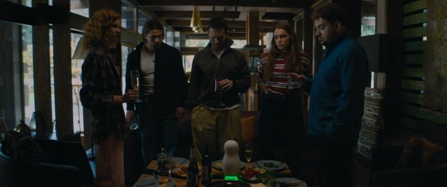 ), трагически погибла не так давно. Вспоминать все печальные события никто вроде бы не собирается, но у умного дома, куда заселяется компания, другие планы. В какой-то момент из колонки, напоминающей куклу-неваляшку, раздается приятный женский голос, предлагающий гостям сыграть в игру. Как известно, такие предложения в кино не сулят ничего хорошего, да и отказаться, что тоже весьма кинематографично, невозможно — через считанные минуты нейросеть заблокирует все двери и заставит друзей по очереди выполнять не самые приятные задания. Все ради того, чтобы узнать, кто из них убил Алену.