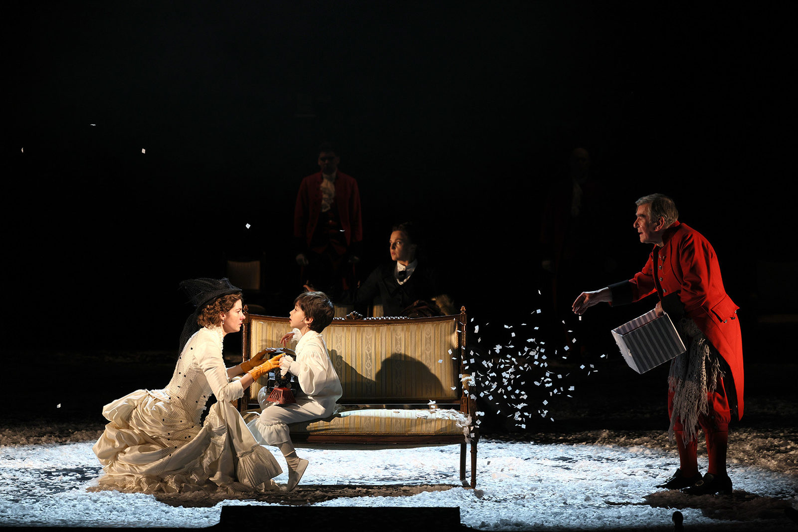 Отдельный смысловой пласт — дети на сцене, здесь задействованы юные представители актерских династий, всегда значимых для Малого театра. Например, Сережу по очереди играют Юрий Юдаев (внук Юрия Соломина