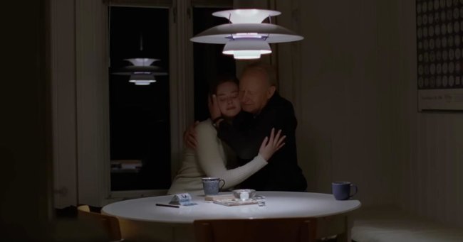 Впрочем, родина Боргов действительно старается, неся на полках и стенах чуть ли не полсотни произведений искусств (все они перечислены в титрах: от сюрреалиста Яна Бейкера до плакатов Эдварда Мунка и Василия Кандинского). Крупные планы основательной трещины, задевающей будто бы весь род, и записки «Не забудь выключить плиту» точечно поддерживают эту связь, но — на контрасте с трогательным сочинением Норы — у персонажей нет химии с родовым гнездом, только механические привычки. Подслушать разговор в бывшем мамином кабинете через печку, выбежать на улицу коротким путем — Триер и его постоянный соавтор Эскиль Вогт