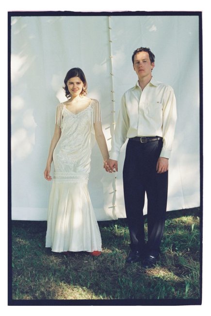 сыграли свадьбу в традиционном русском стиле. Тимофей был одет в вещи от отечественного бренда Syrepka, а Таисья купила самое простое платье, которое помогла украсить художник по костюму Марина Ананьева