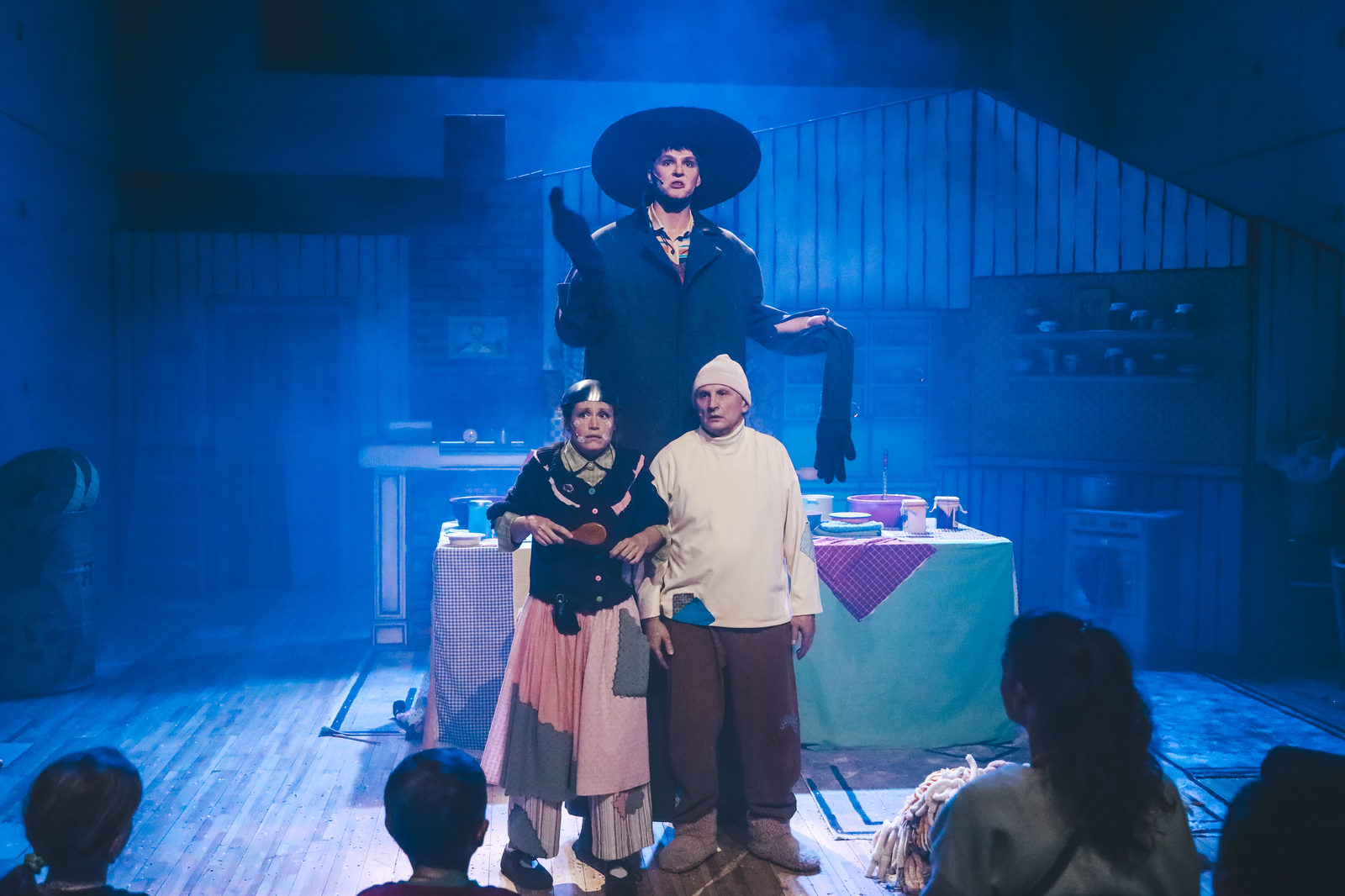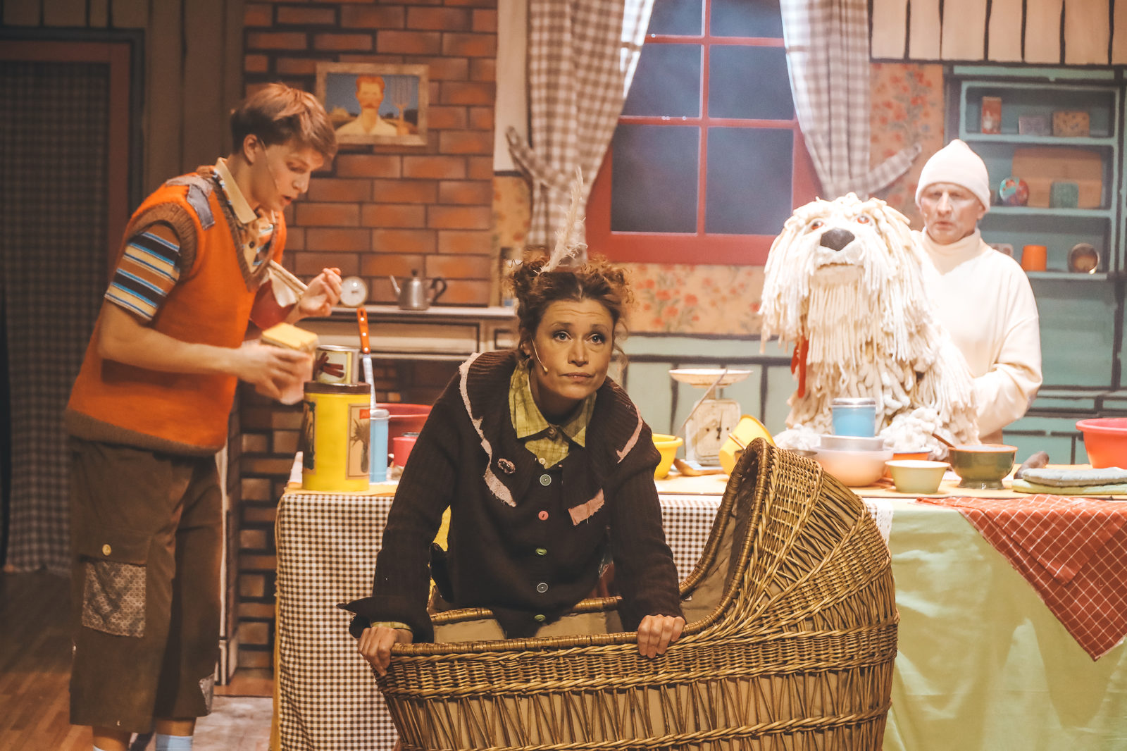Главный соучастник всех приключений – большой лохматый пёс Королёк с человеческими глазами (кукольной собакой управляют по очереди Игорь Тищенко и Сергей Арбузов), настолько мягкий и живой, что его хочется обнять. Королёк носится по сцене, выполняет команды хозяев, посильно помогает им с готовкой. С ним даже поход за ванильным сиропом к страшному мистеру Ха-ха, великану на ходулях в чёрном плаще, превращается в сказочный трип с неожиданными подарками.