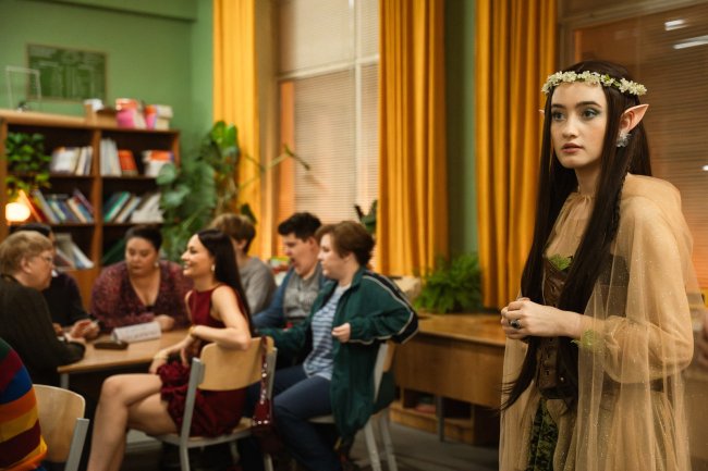 ) отправилась в вечернюю школу, чтобы мужчинку приличного найти — и дочери угодить: она как раз классная руководительница Алена Рудольфовна (дебют стендап-комикессы Динары Курбановой). Та не красным носом, как олененок Рудольф, но тоненьким голоском организует вокруг себя педагогическое волшебство. Среди учителей также строптивая «англичанка» Катя (Ася Резник