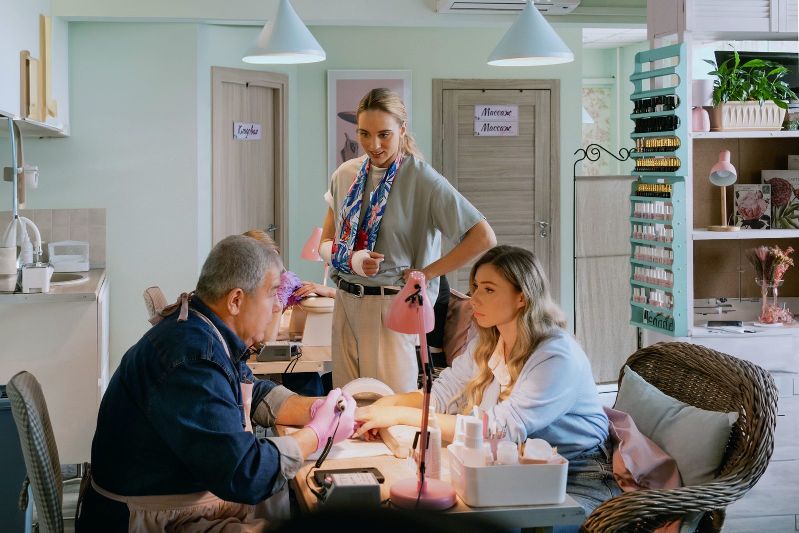 ), тоже уволенный из цеха, сначала предлагает Семену делать гробы: «про дерево мы все знаем», но случайный поход в маникюрный салон сестры Антохи (Дарья Пицик
