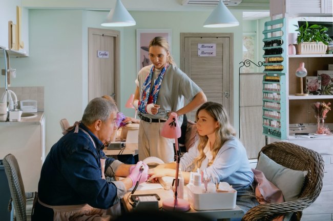 ) вдруг наталкивает Бучина на мысль о маникюре. Инструменты почти такие же, только в 10 раз меньше, а денег, по слухам, в 10 раз больше. Так бывший мастер матрешек и идет осваивать профессию мастера по маникюру. Только вот мужчинам, особенно с внешностью Александра Робака, в этом деле особо не доверяют, да и клиенткам, оказывается, нужно не только пилить и красить ногти, но еще улыбаться и с ними разговаривать, а это для грубоватого Бучина становится вызовом большим, чем освоение новой профессии.