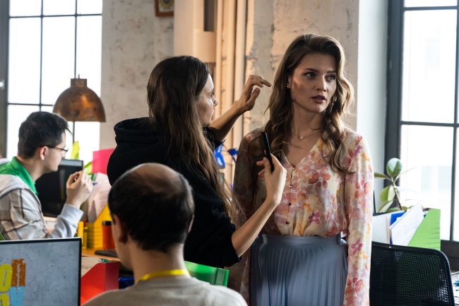 Мы не похожи. Я состоялась в отношениях, в семье, как мама. А у неё — амурные переживания, рыцари, выбор парней. Мне пришлось вспоминать, каково это — переживать, с кем пойти на свидание. В жизни я об этом никогда так не заморачивалась. Поэтому пришлось «ломать» себя, ведь я никогда не пользовалась мужчинами — даже ругаю себя за это, мол, иногда полезно не быть «я всё сама». А у Светы это вшитая опция: она легко просит Матвея и всё починить, и отчёт написать, и кофе с пончиками принести. Для неё это — базовые настройки. Я учусь позволять ухаживать за собой, а у Светы это отлично получается. При этом пришлось искать нотку, чтобы это выглядело легко, а не капризно и стервозно.