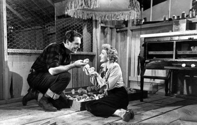 в экранизации одноимённого романа Бетти Макдональд пытаются разводить кур и продавать яйца, не имея никакого опыта в птицеводстве, поскольку оба приехали из города, где прожигали жизнь. Романтическая комедия Честера Эрскина