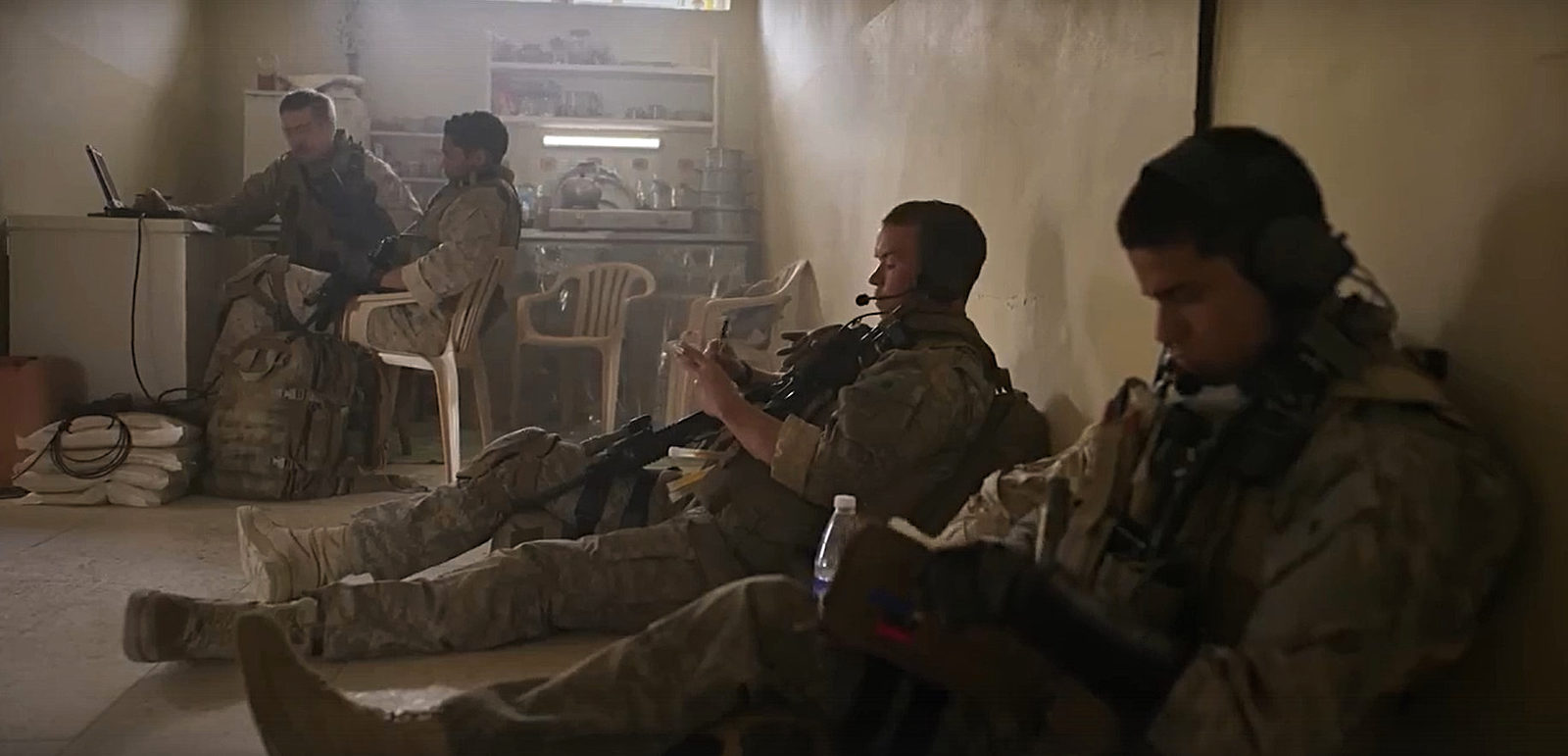 Патриотизм, равно как и намёки на империализм США, тоже не вписываются в формулу Гарленда-Мендосы, лишенную любых бинарных оппозиций, кроме самой емкой — «работа-смерть». Цели миссии в фильме толком не проговариваются, мотивация для пальбы, очевидно, не влезает в солдатский протокол, оставаясь тайной. Враг ведь, так же как и герои, практически обезличен: не носители звериных черт, но лишь элементы общей какофонии, джихадисты несколько раз мелькают в перекрестье оптического прицела, но в основном снуют по кромке кадра силуэтами, рваными линиями.