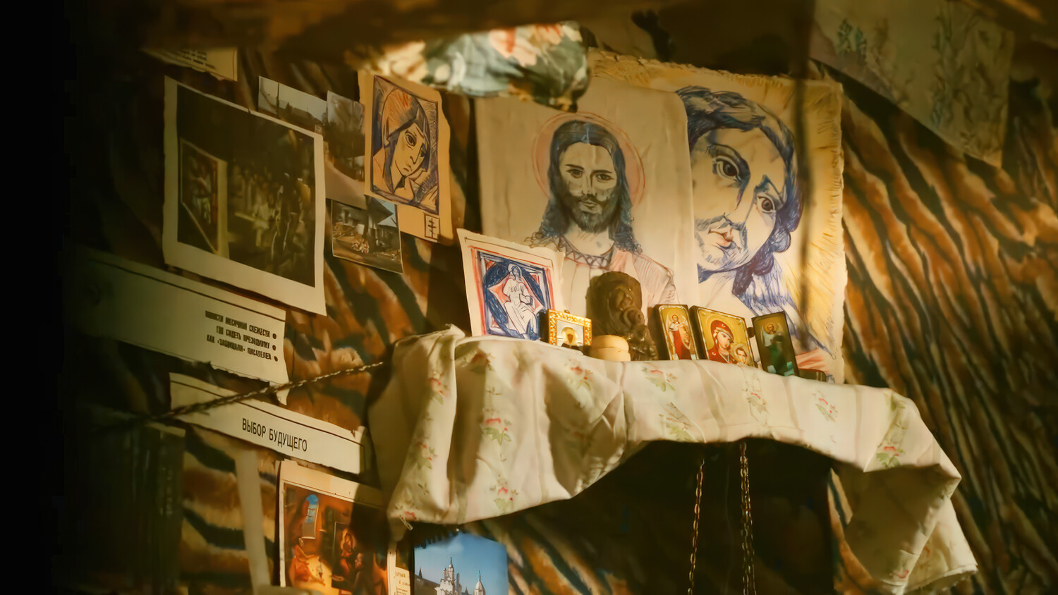 играет единственного на весь фильм всерьез негативного персонажа) сразу обозначится как «кайфарик» и начнет намекать коммерсанту на необходимость «подогреть» свои зависимости. Смотрящий от братвы «бандит-богомолец» Слава (рэпер Хаски