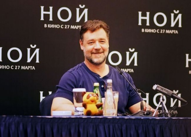 Очередным звездным гостем российской столицы стал Рассел Кроу, приехавший в Москву на премьеру одной из самых ожидаемых картин месяца - "Ной". Журналисты - по уже сложившейся традиции - вручили актеру подарки: Винни-Пуха и самодельный ковчег. Ну и, конечно, задали звезде множество вопросов. Модератором пресс-конференции выступил Антон Камолов, который искрометно шутил и сглаживал углы. Например, после запрета на фото во время общения с оскароносным актером, Антон предложил фотографам отснять вместо Рассела себя, а потом просто "приклеить" голову "Ноя" в фотошопе.