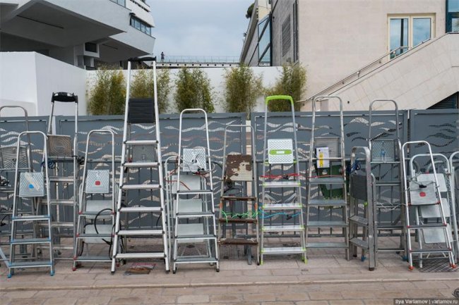 Папарацци (в смысле, не аккредитованные СМИ) ухищряются еще и заработать на продаже… лестницы. Обычные строительные лестницы – это возможность из-за забора суметь выхватить своим фотоаппаратом прибывшую звезду. Эти умельцы занимают место задолго до старта фестиваля, и иногда, если картина не очень интересна, могут дать вам попользоваться своим «постаментом». Такая услуга за 5 часов может стоить от 100 до 500 евро.