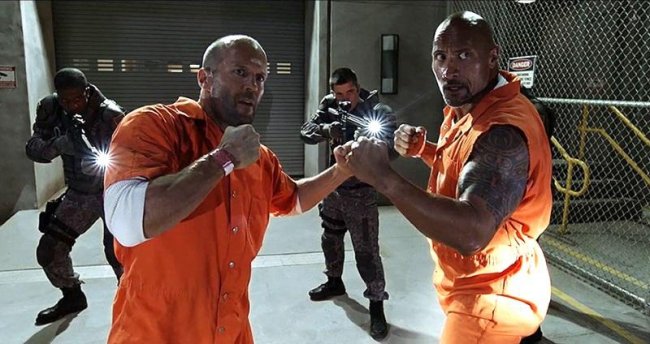 Учитывая, что каждый член коллектива максимально сосредоточен на главной задаче, то лица у героев предельно серьезные и далеко не обременены позитивом. Но, пусть зритель не спешит расстраиваться, ведь по сценарию у нас есть персонаж Декарда Шоу, которого играет будущий (впервые!) папа Джейсон Стетхэм. Саркастические шуточки от него в сторону Хоббса, заставят фэнов поулыбаться, а после фильма закидать Интернет новыми мэмами и приколами.