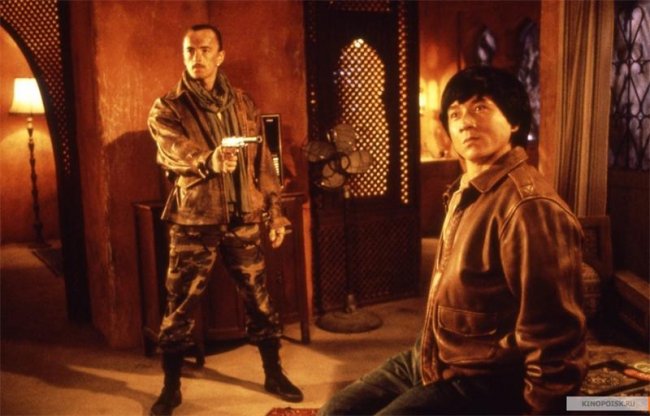 Во время погони с участием черных машин, прямо в конце, когда две из них падают в воду, а Джеки хватается за подвешенный ящик, можно увидеть, как пассажиры вылезают из машины и показывают знак съемочной группе, что все в порядке.
