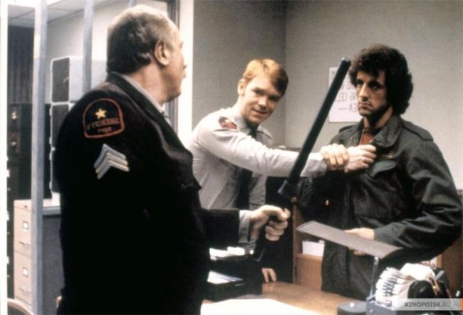 В книге, когда Рэмбо выбегает из полицейского участка, он совершенно голый. И одежду ему дают самогонщики, которые прятались в лесу.