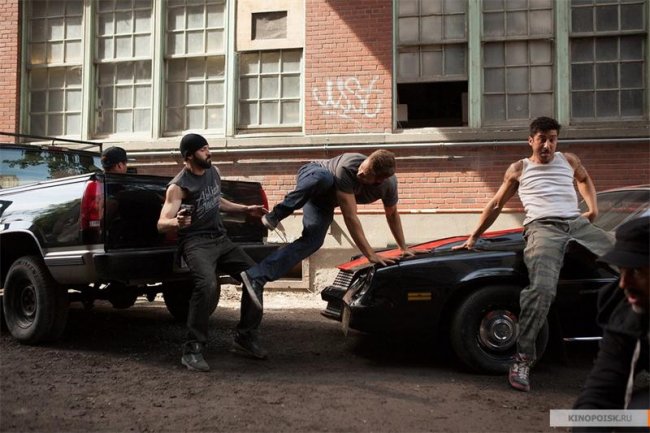 Когда Дэмиен и Лино врезаются в кирпичный дом на большом фургоне, показывают кадры из салона машины, в этот момент видно, что это уже интерьер Mustang GT350, а не фургона.
